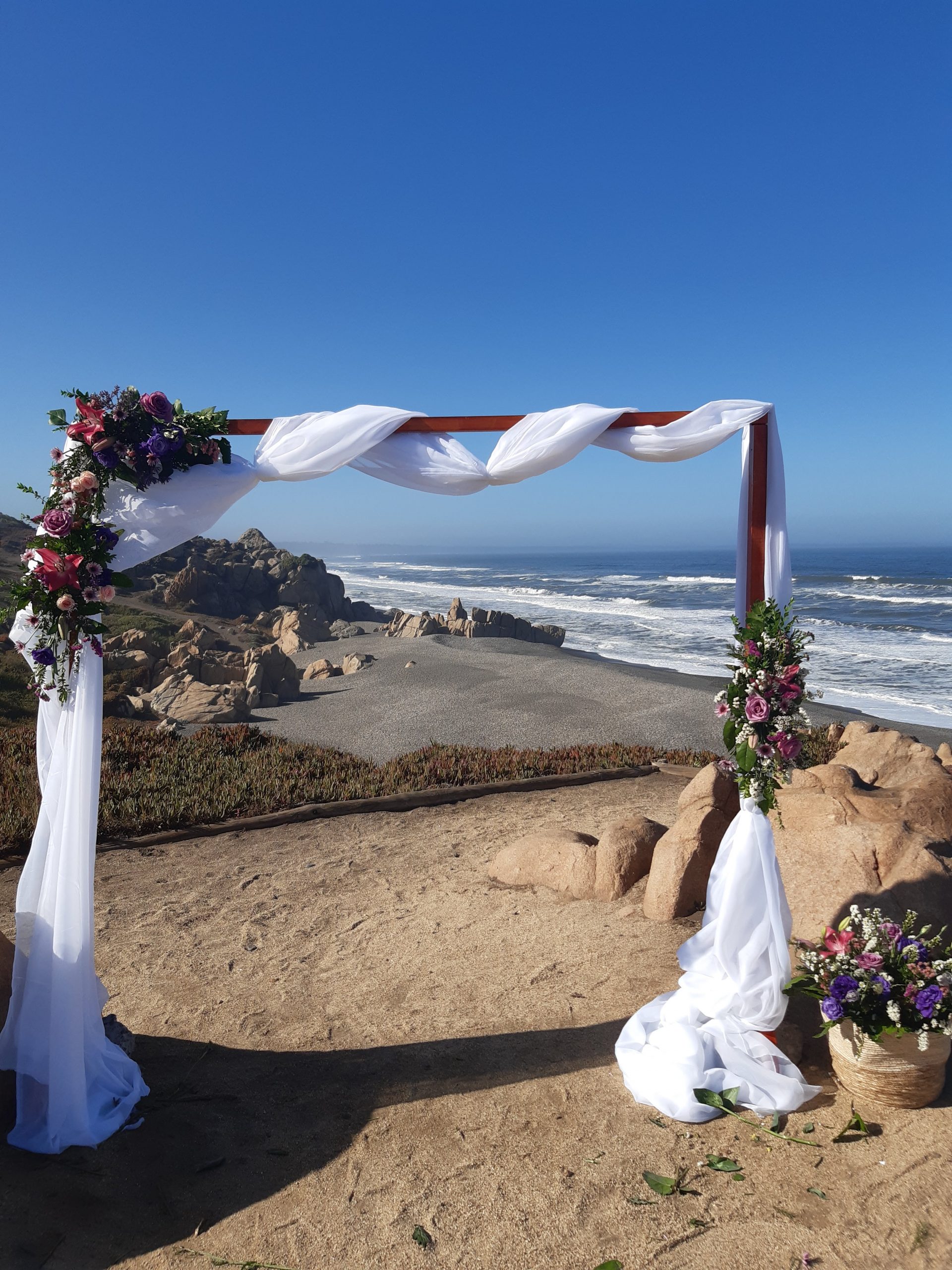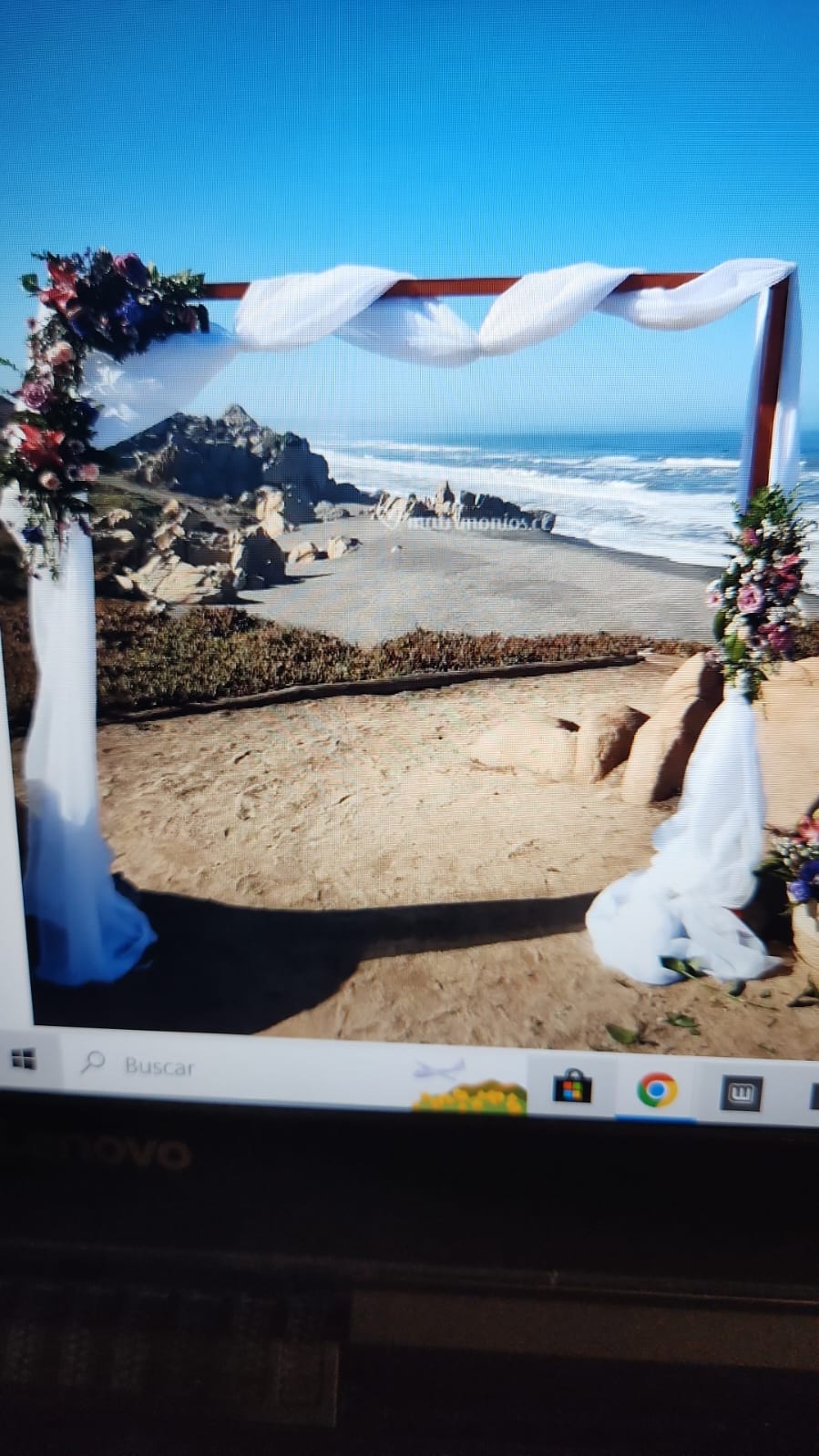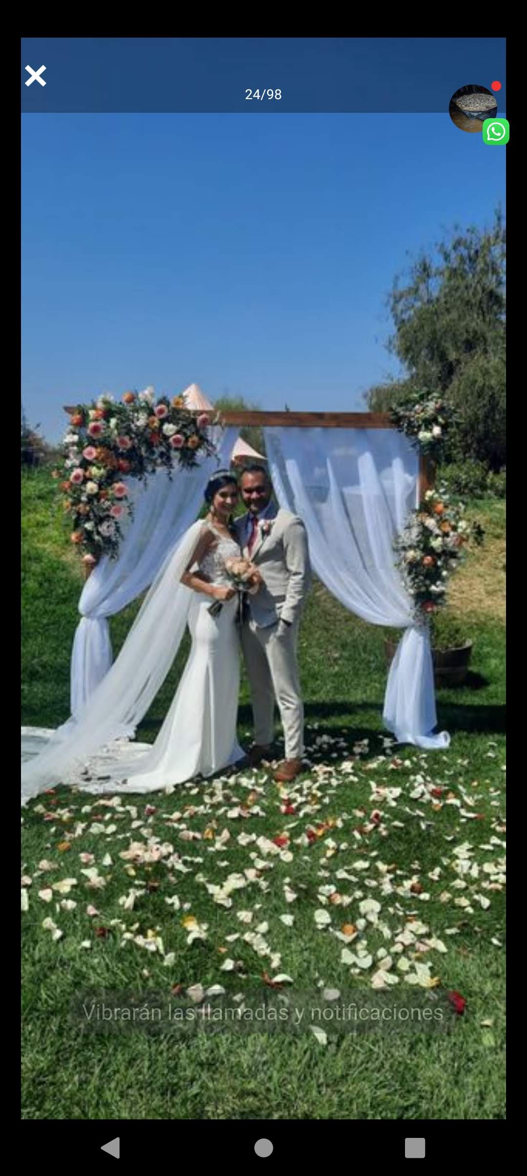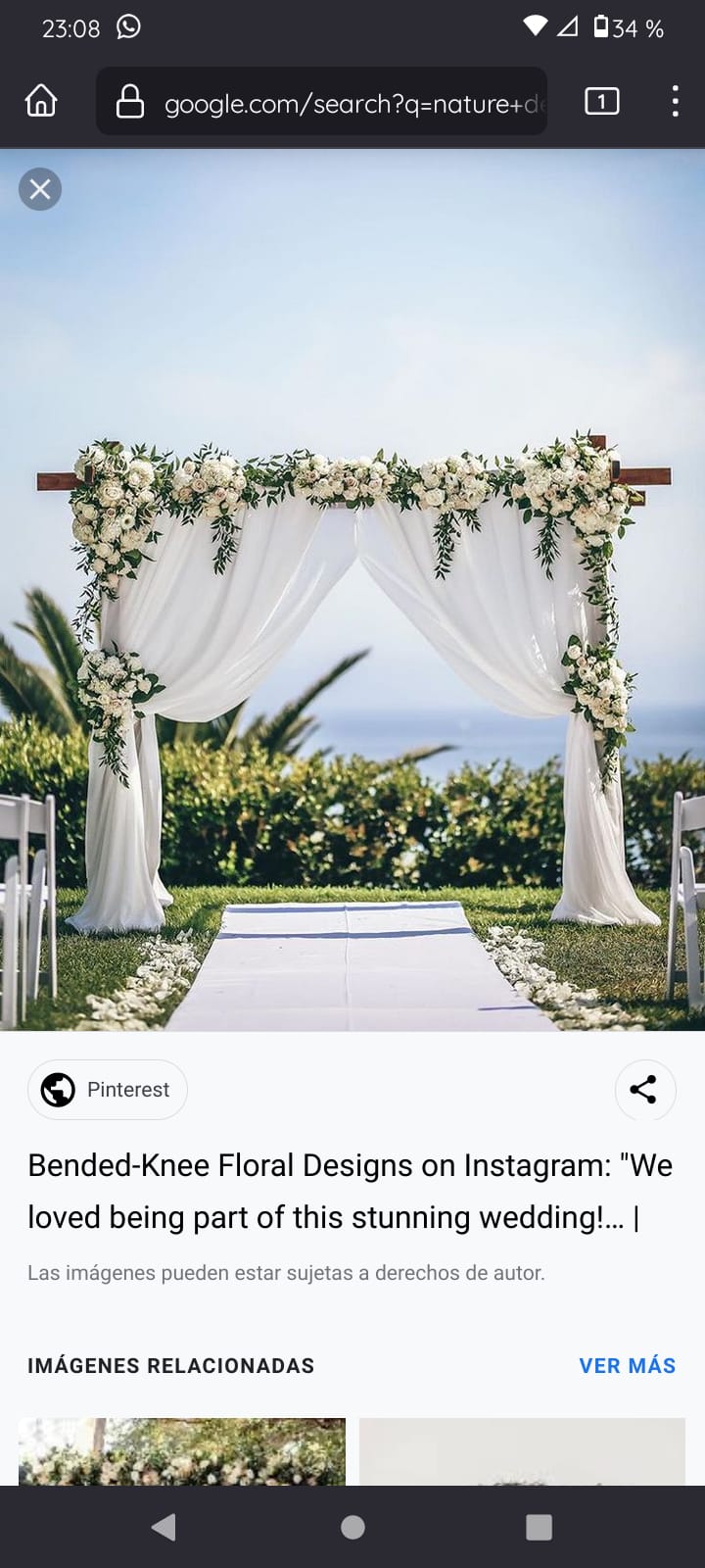Arco rectangular decorado con velo, y 2 explosiones florales.