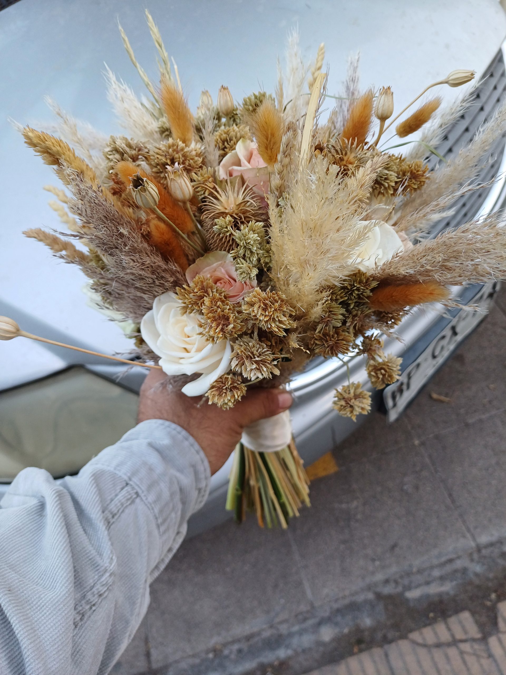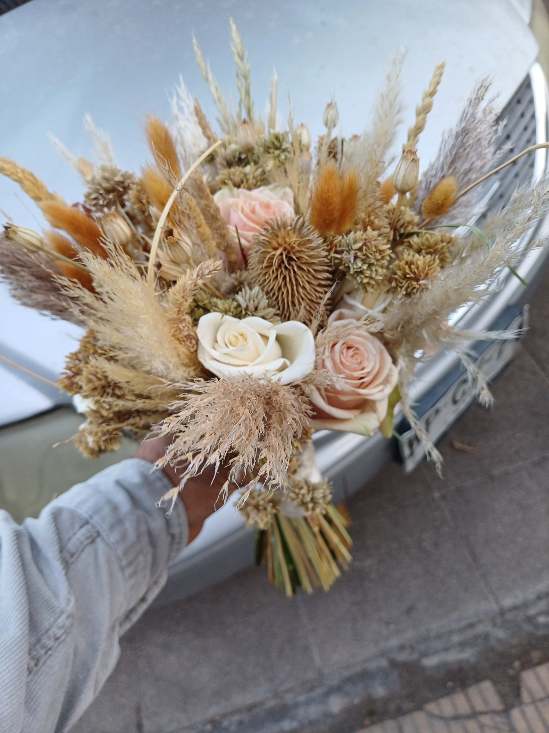 Floreria Rosamor ofrece estos bellos ramos de novia con flores secas , otoñales .